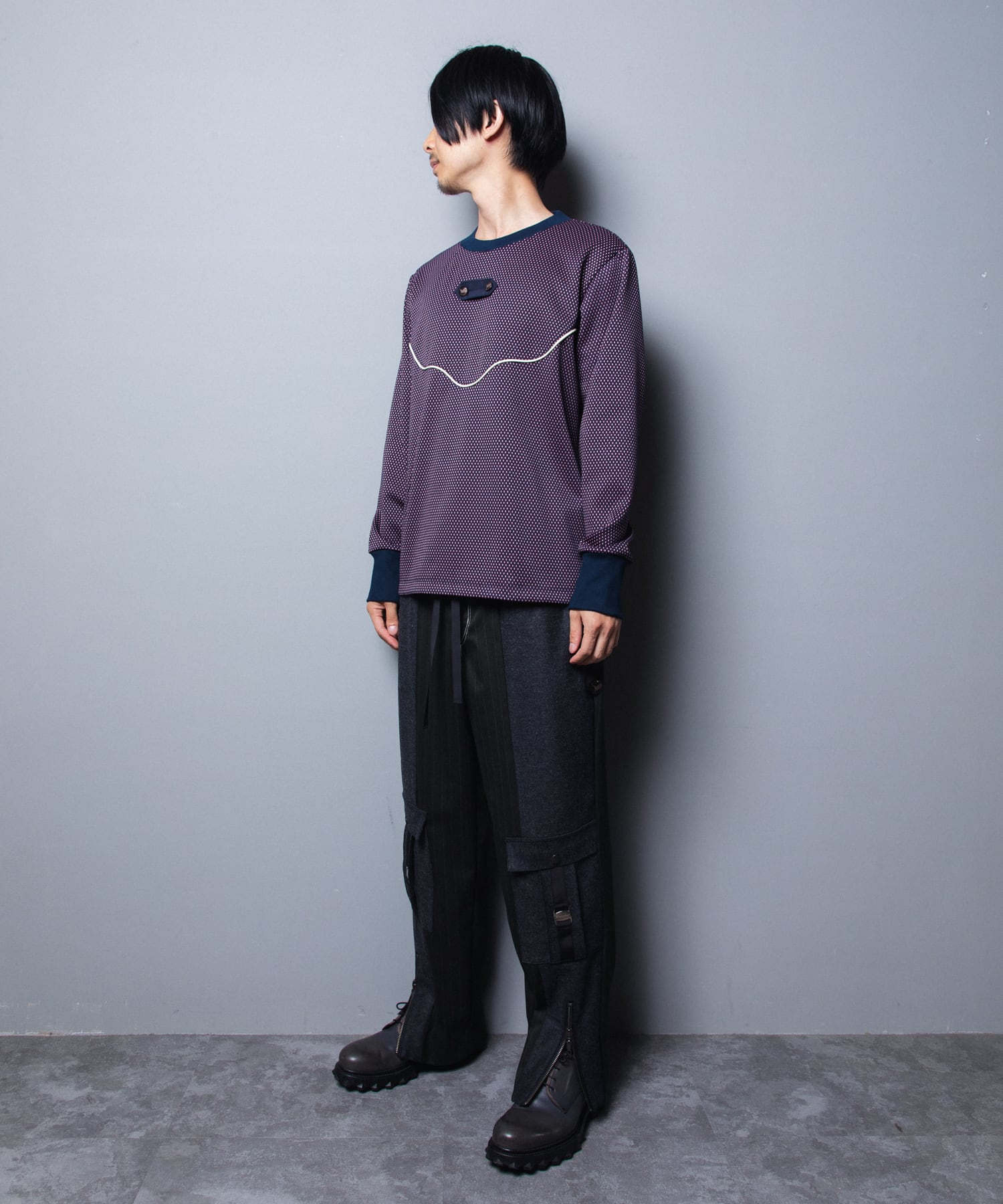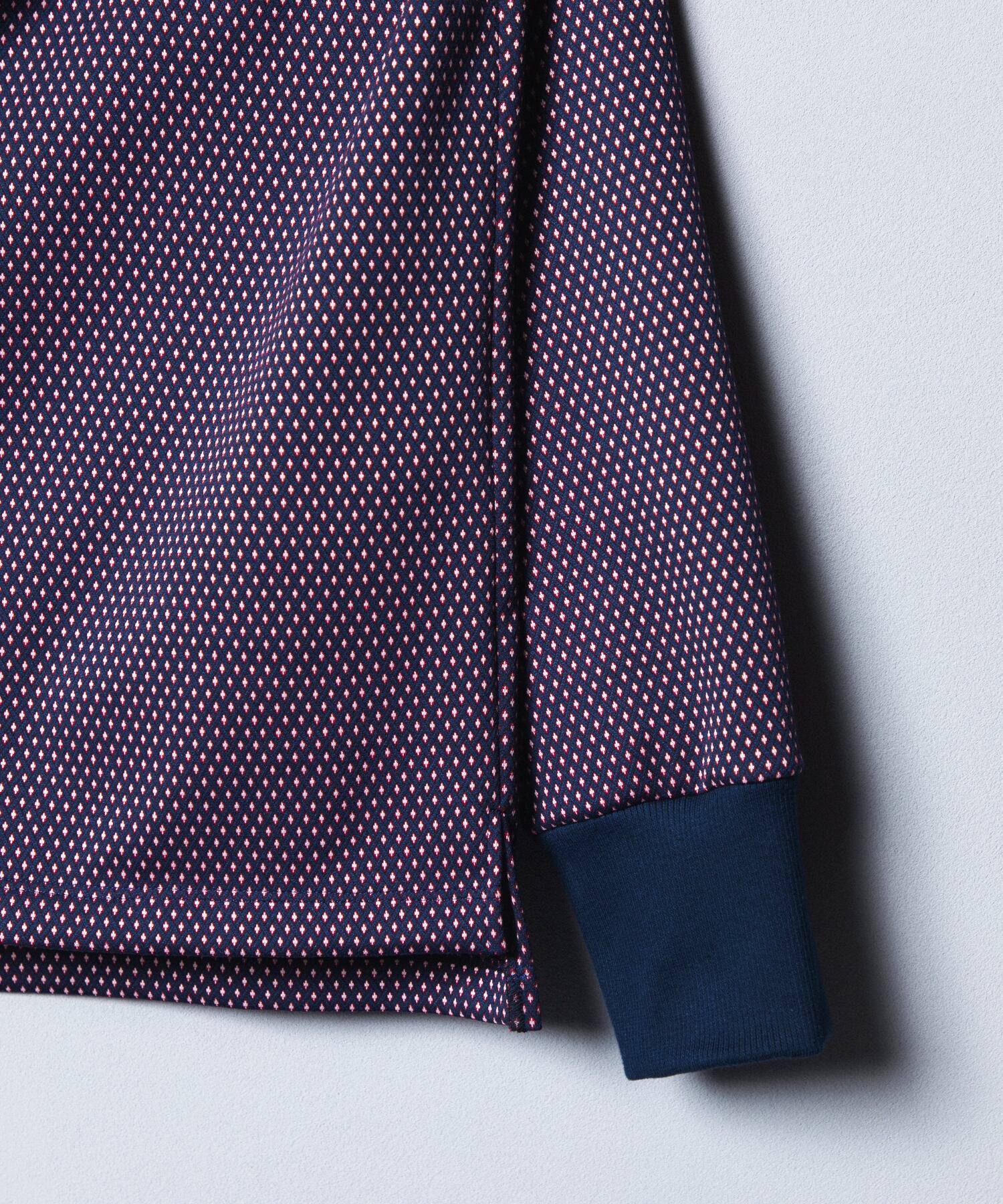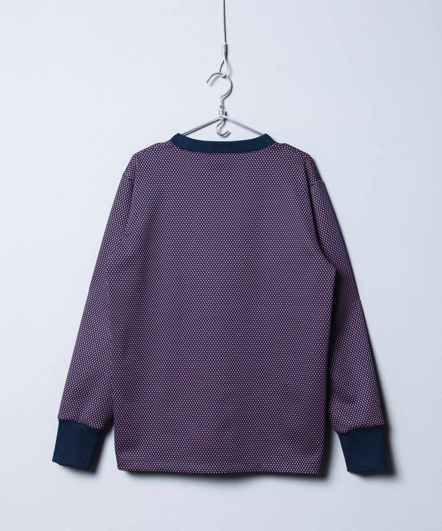 身生地には、4種類の先染め糸を使用し、柄に奥行きが出るよう仕上げたダイヤ柄のジャカード織りニットスウェット素材を使用。