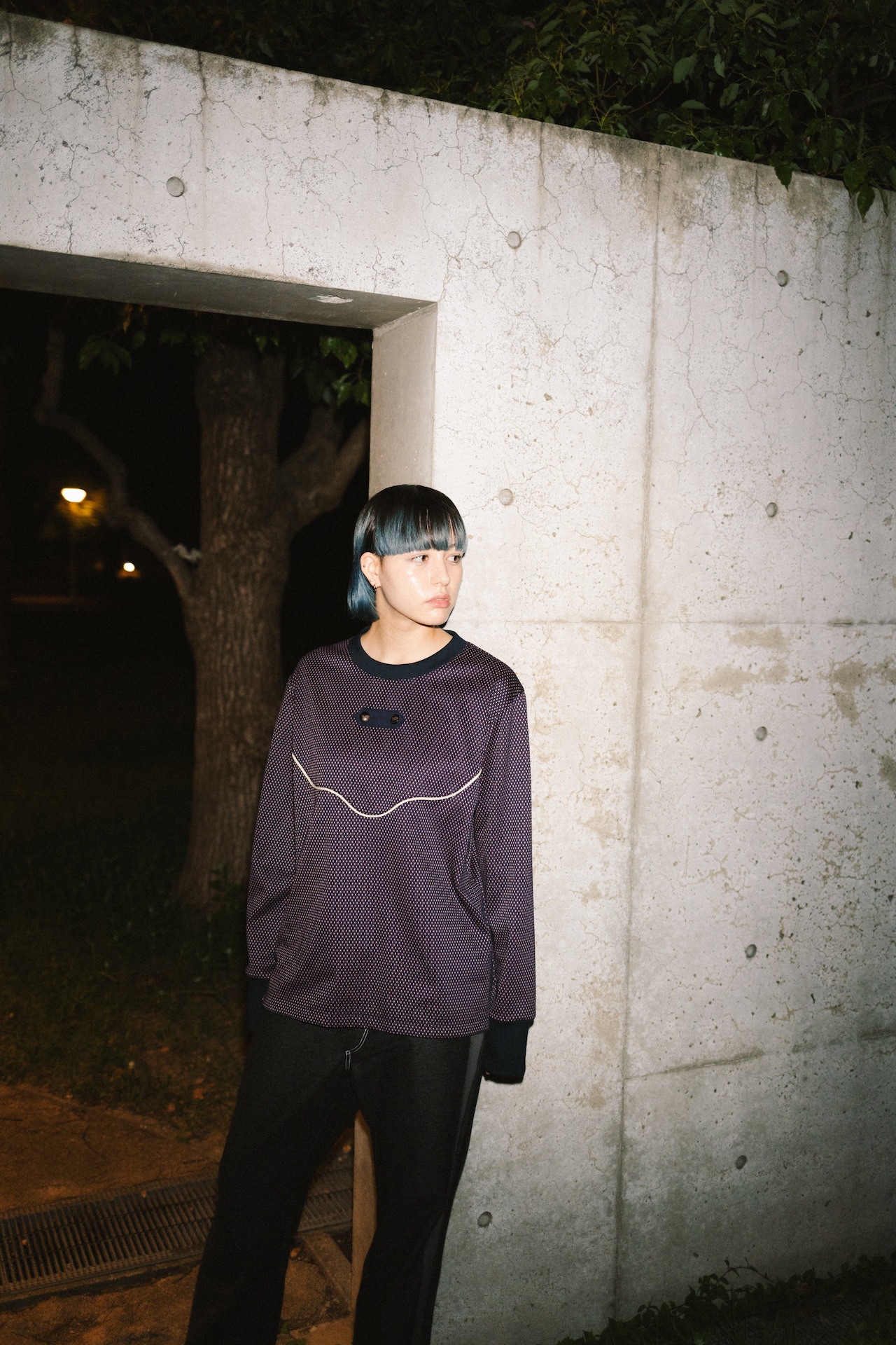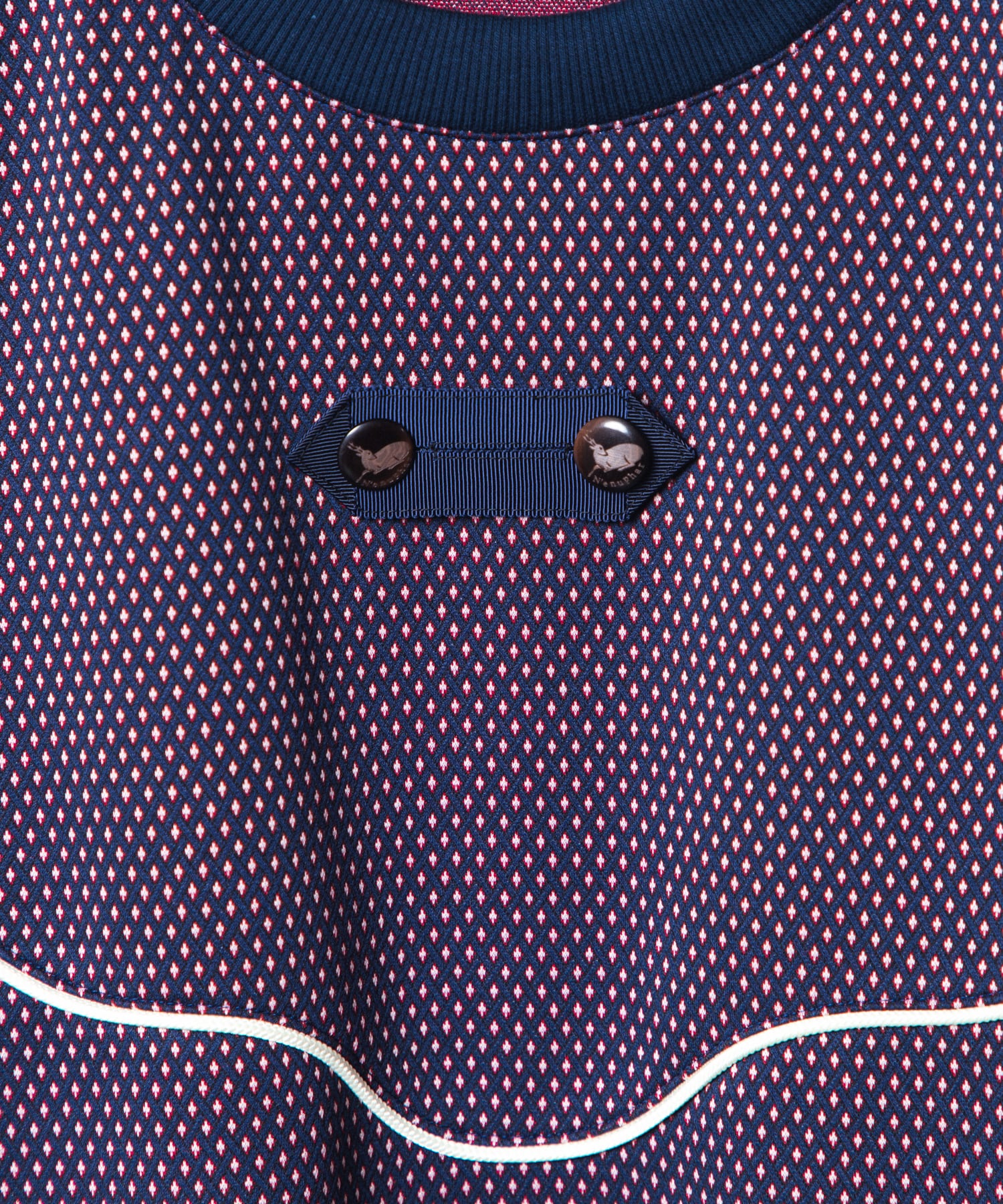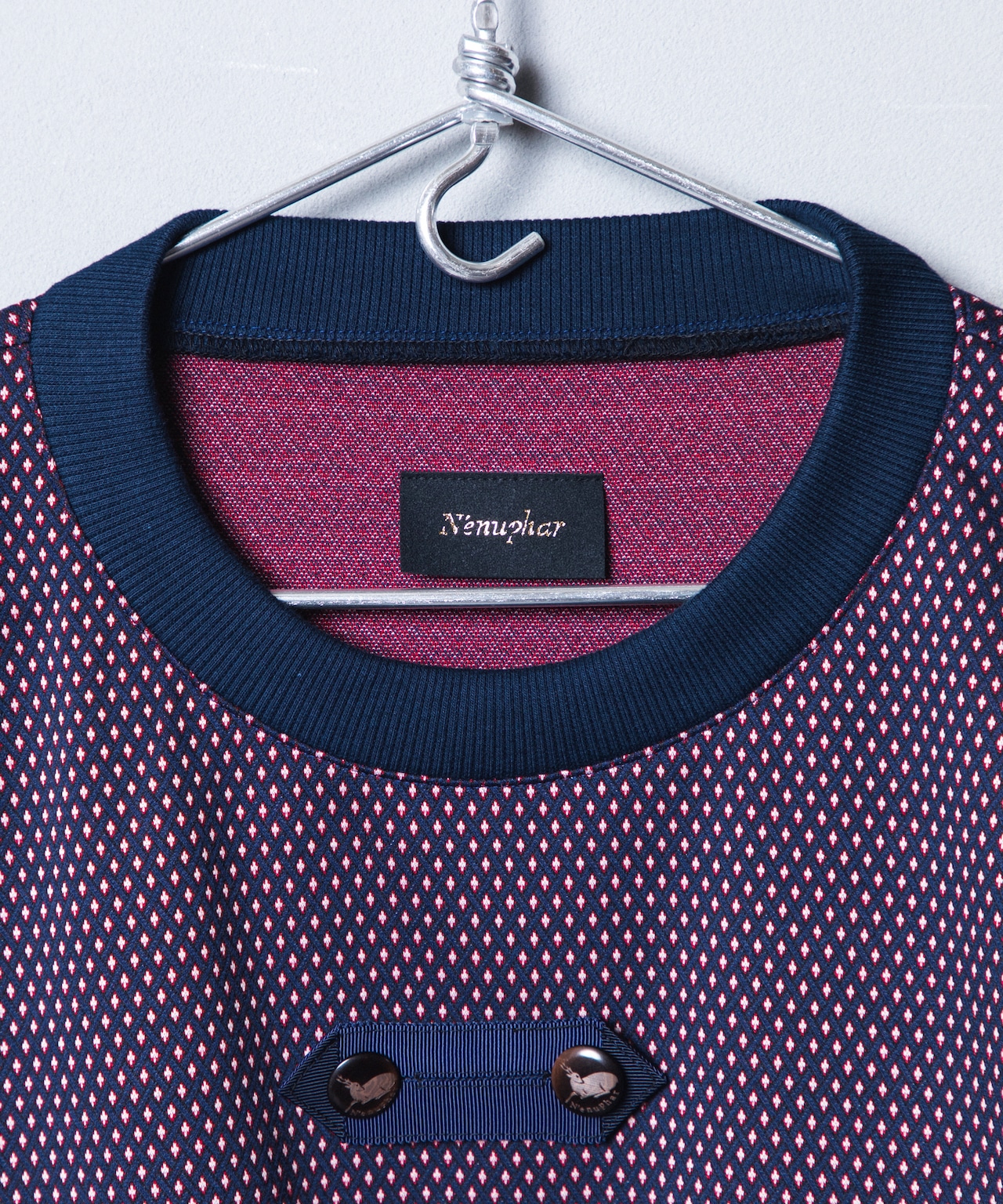 身生地には、4種類の先染め糸を使用し、柄に奥行きが出るよう仕上げたダイヤ柄のジャカード織りニットスウェット素材を使用。