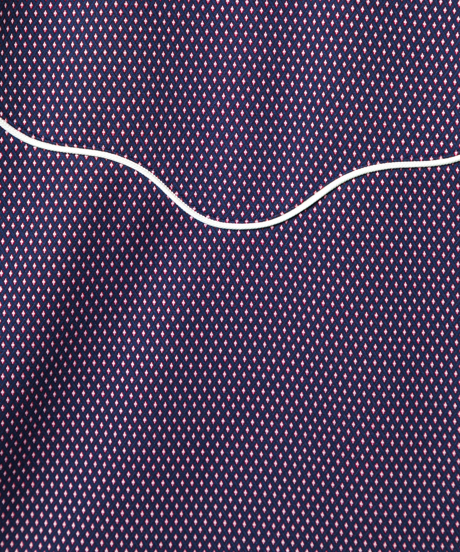 カーブの効いた切り替え部分にはパイピングテープを挟み込み、ウエスタン風のデザインに仕上げた。
