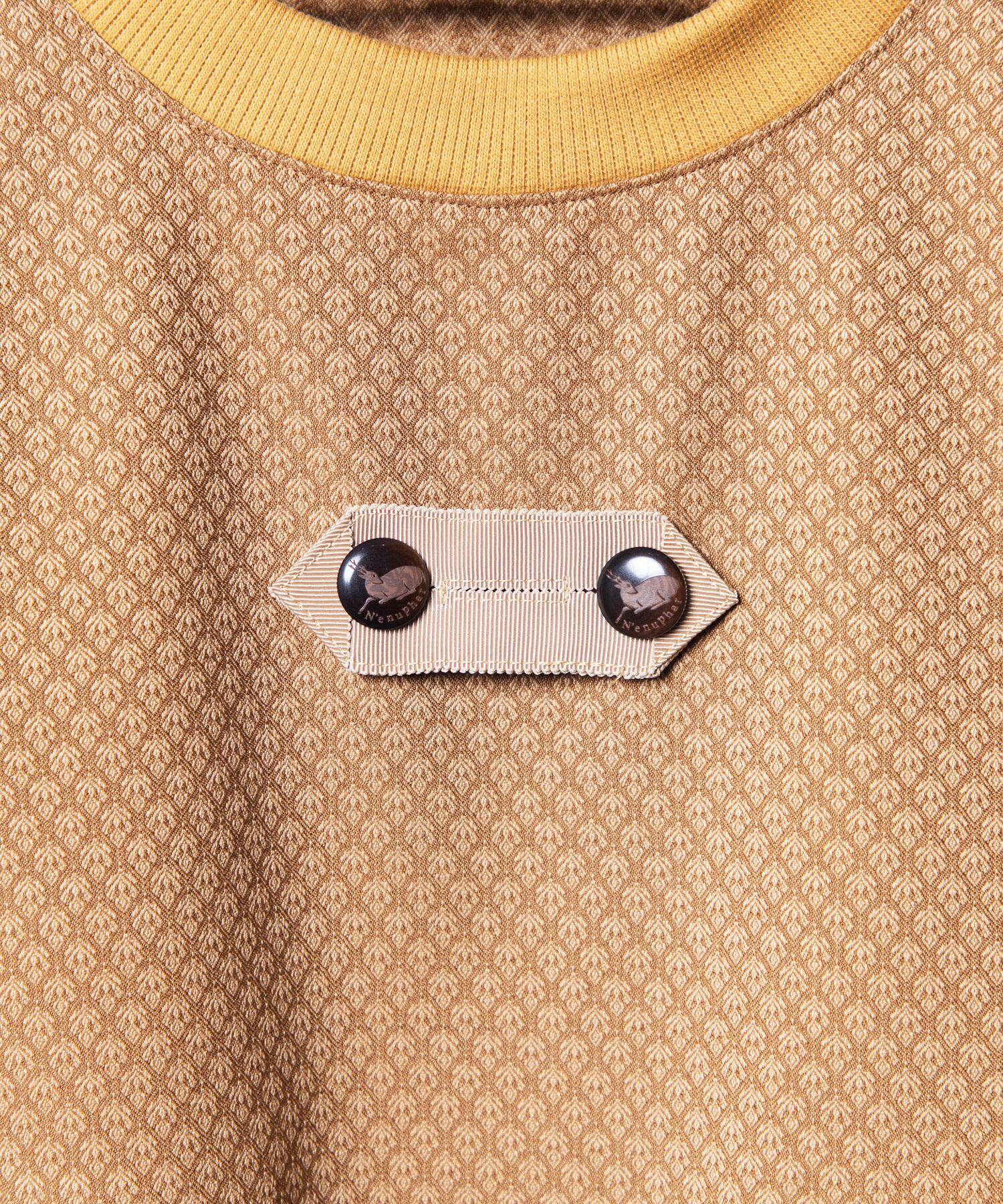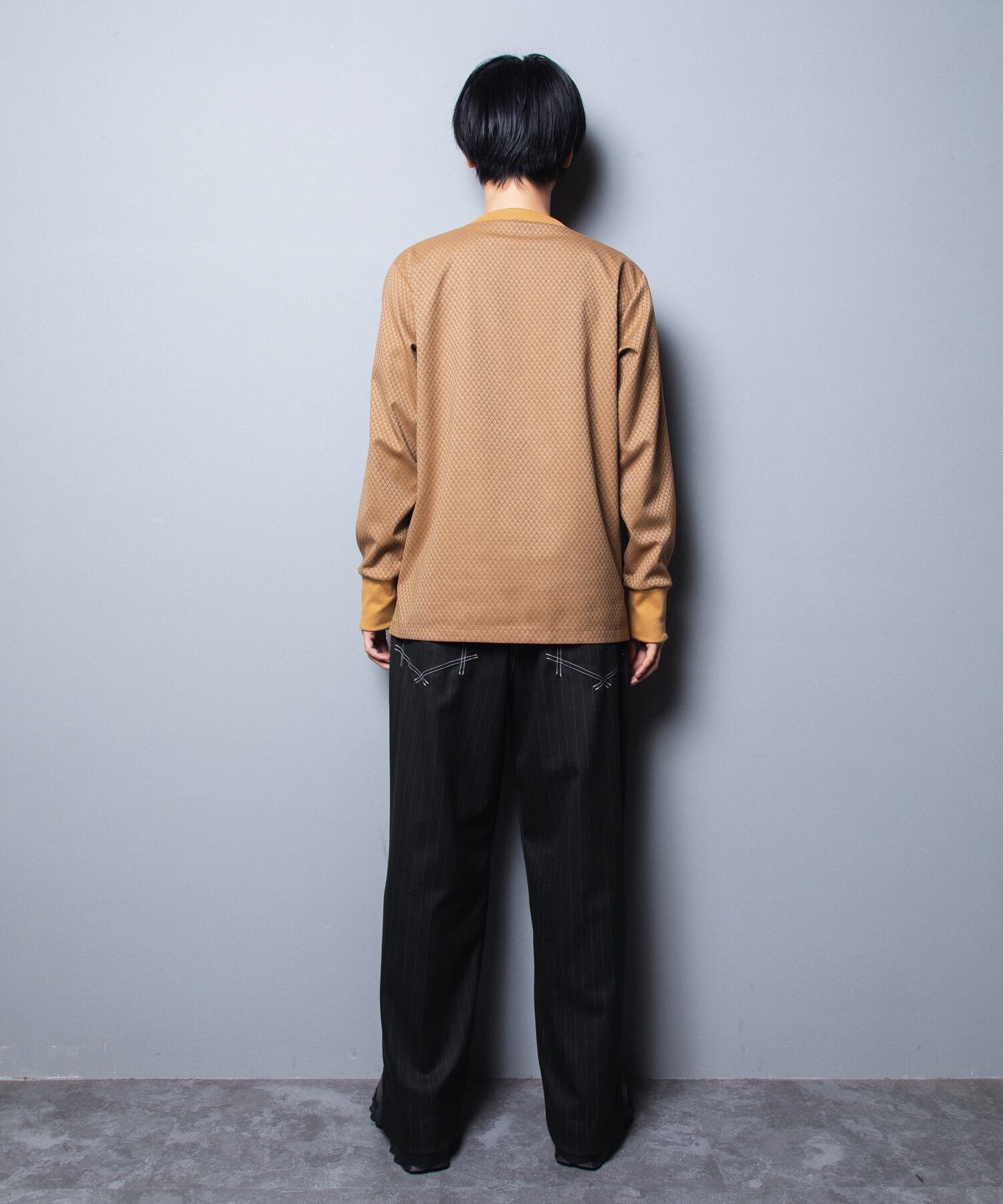 身生地には、最大20枚の組織を組むことができる織機で織られた、ジャガードのように複雑な幾何学模様のニットスウェット素材を使用。