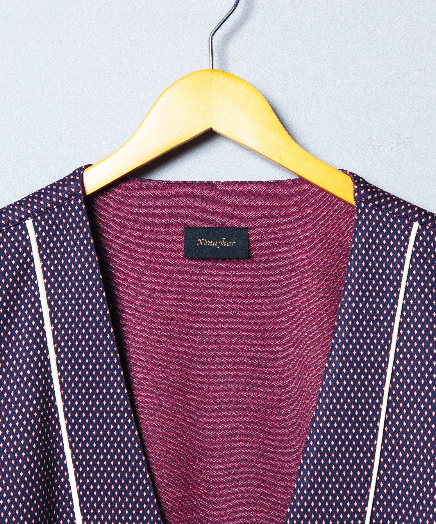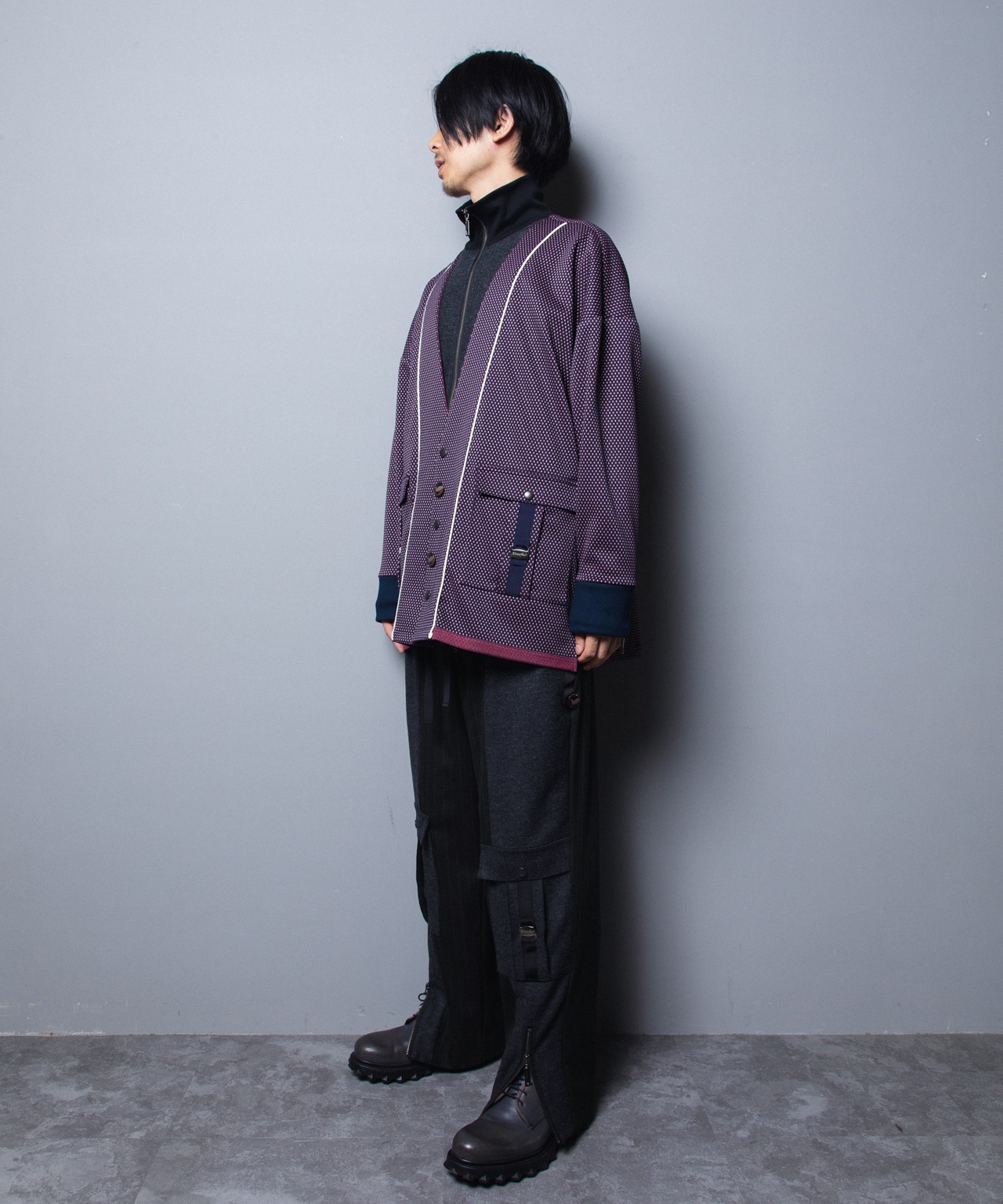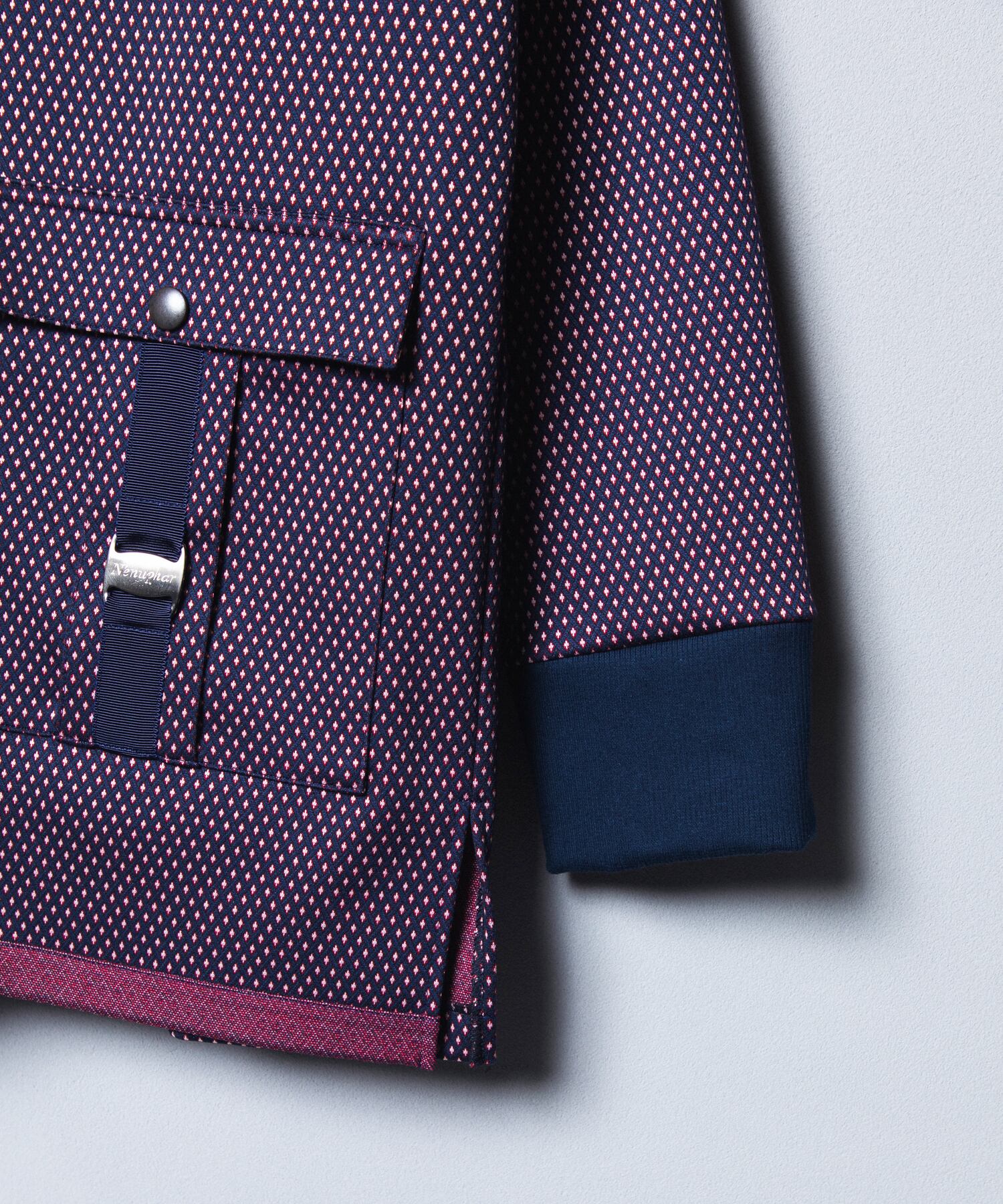 身生地には、4種類の先染め糸を使用し、柄に奥行きが出るよう仕上げたダイヤ柄のジャカード織りニットスウェット素材を使用。