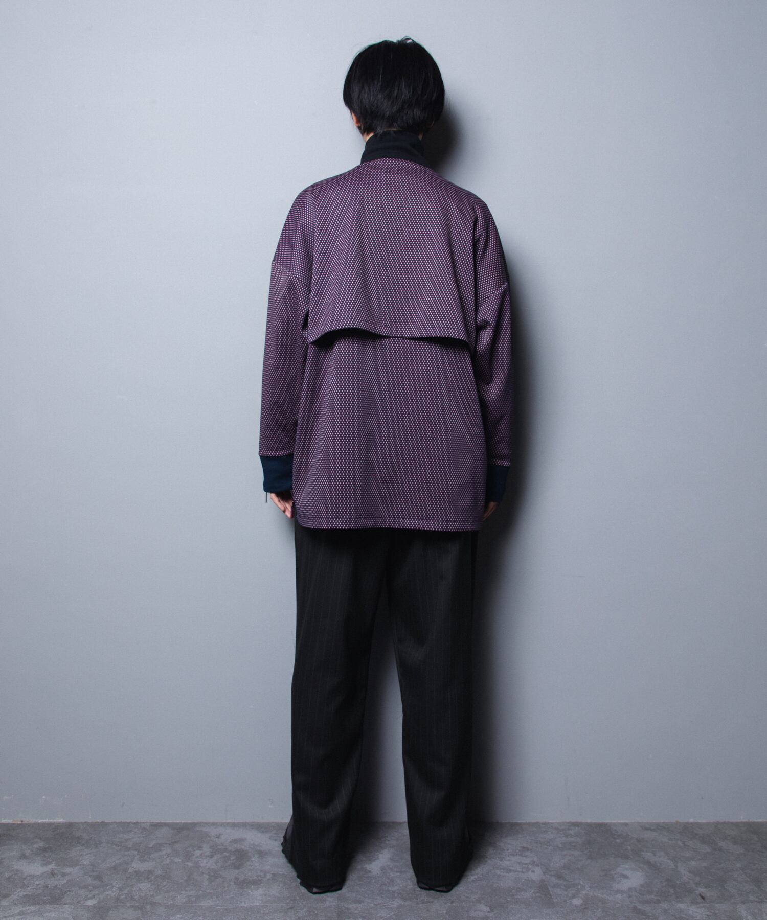 裏前身返しをあえて表側に見せ、生地端にはパイピングテープを挟み込むことで、スポーティーな印象に仕上げた。