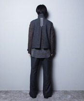 バックには、グログランテープをパイピングで縁取り、動物家紋から着想を得た鹿のロゴ入りスコッチボタンを装飾し、ミリタリーテイストのエポーレット風デザインに。