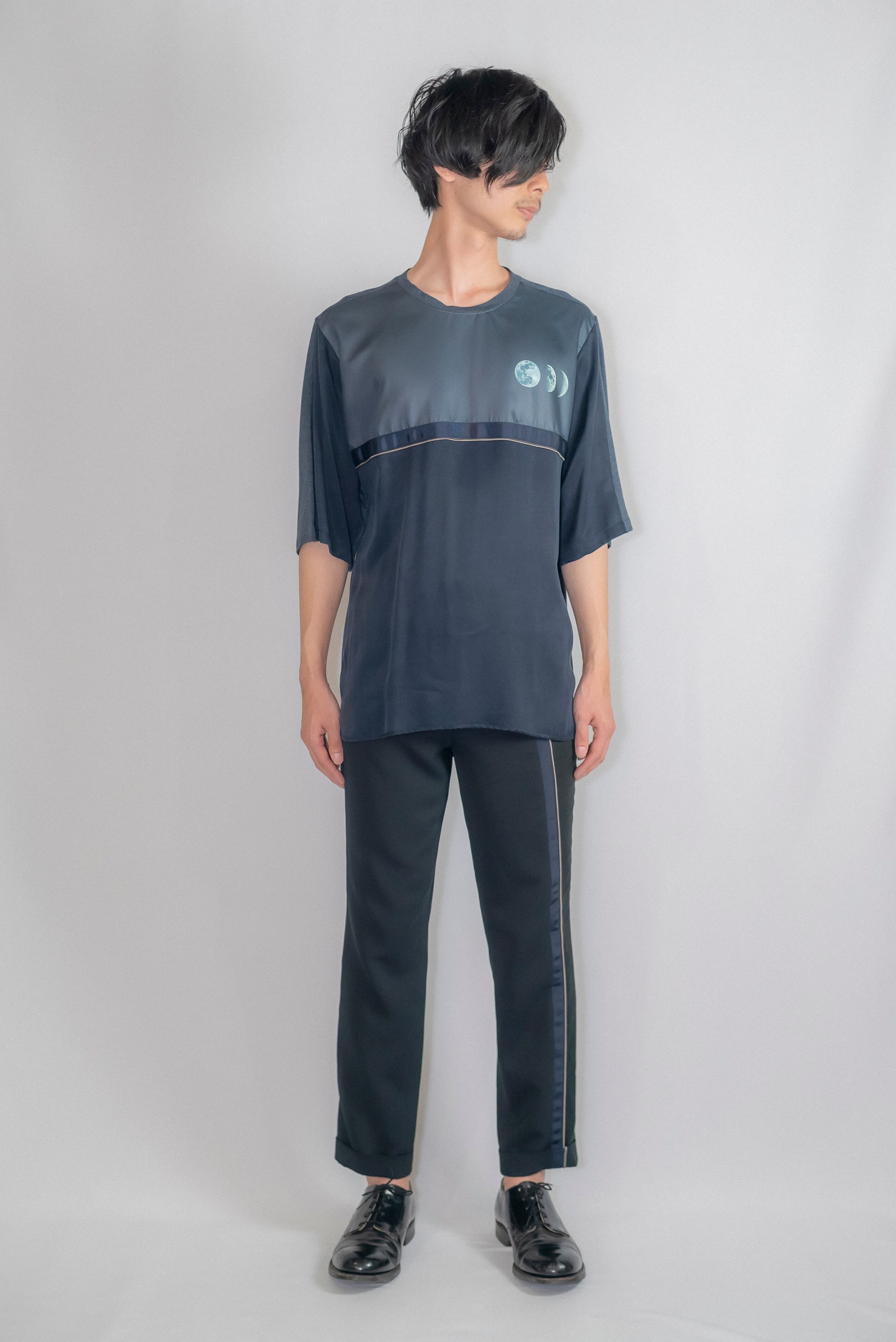 シルエットはややゆったりめのハーフスリーブカットソー。