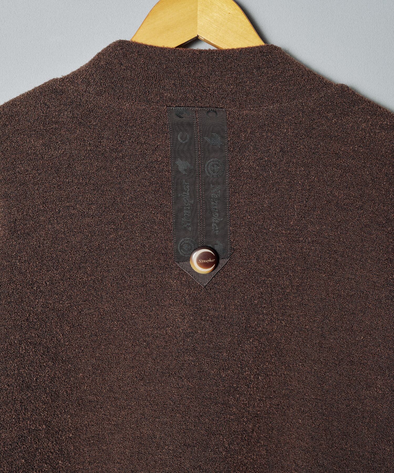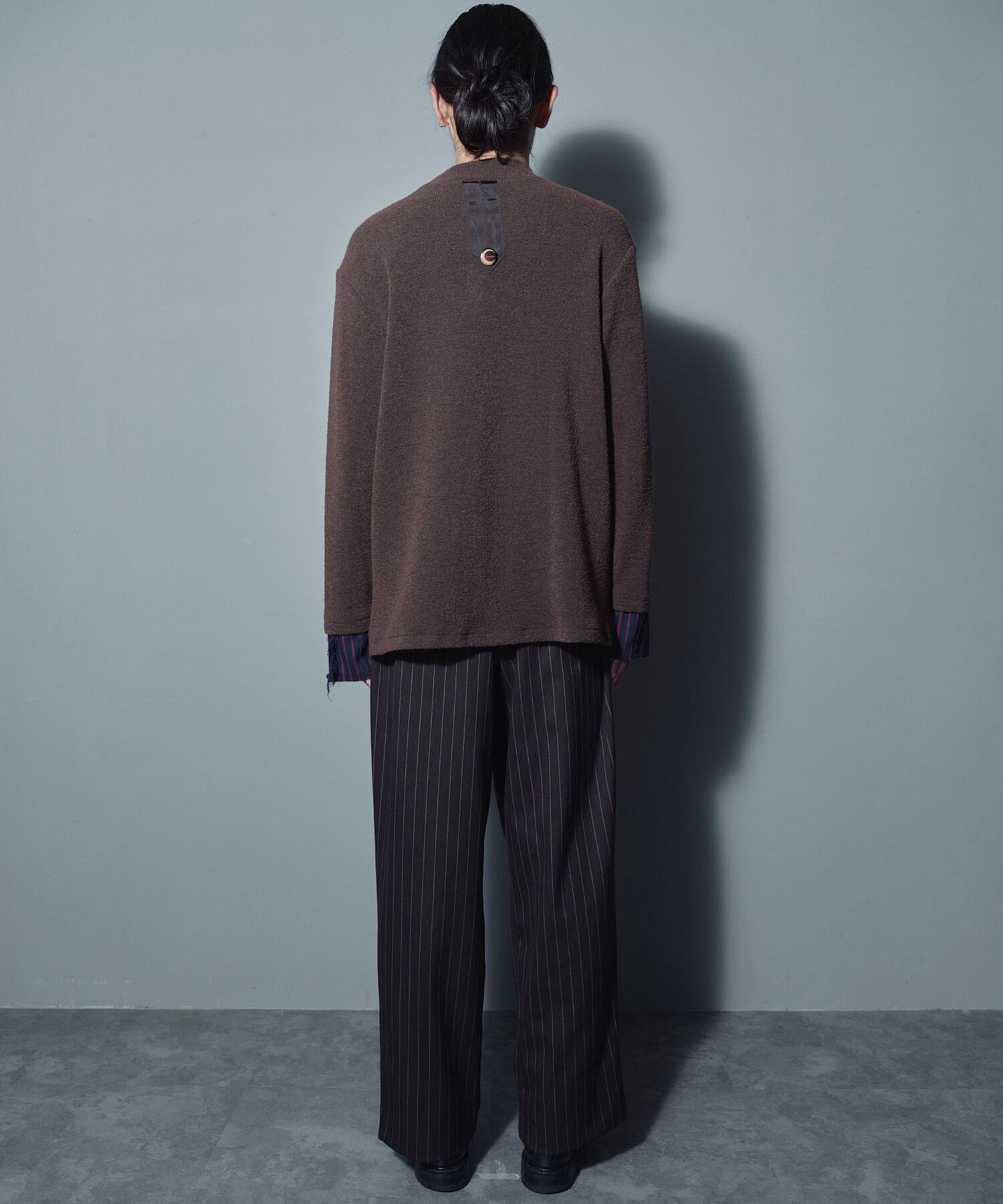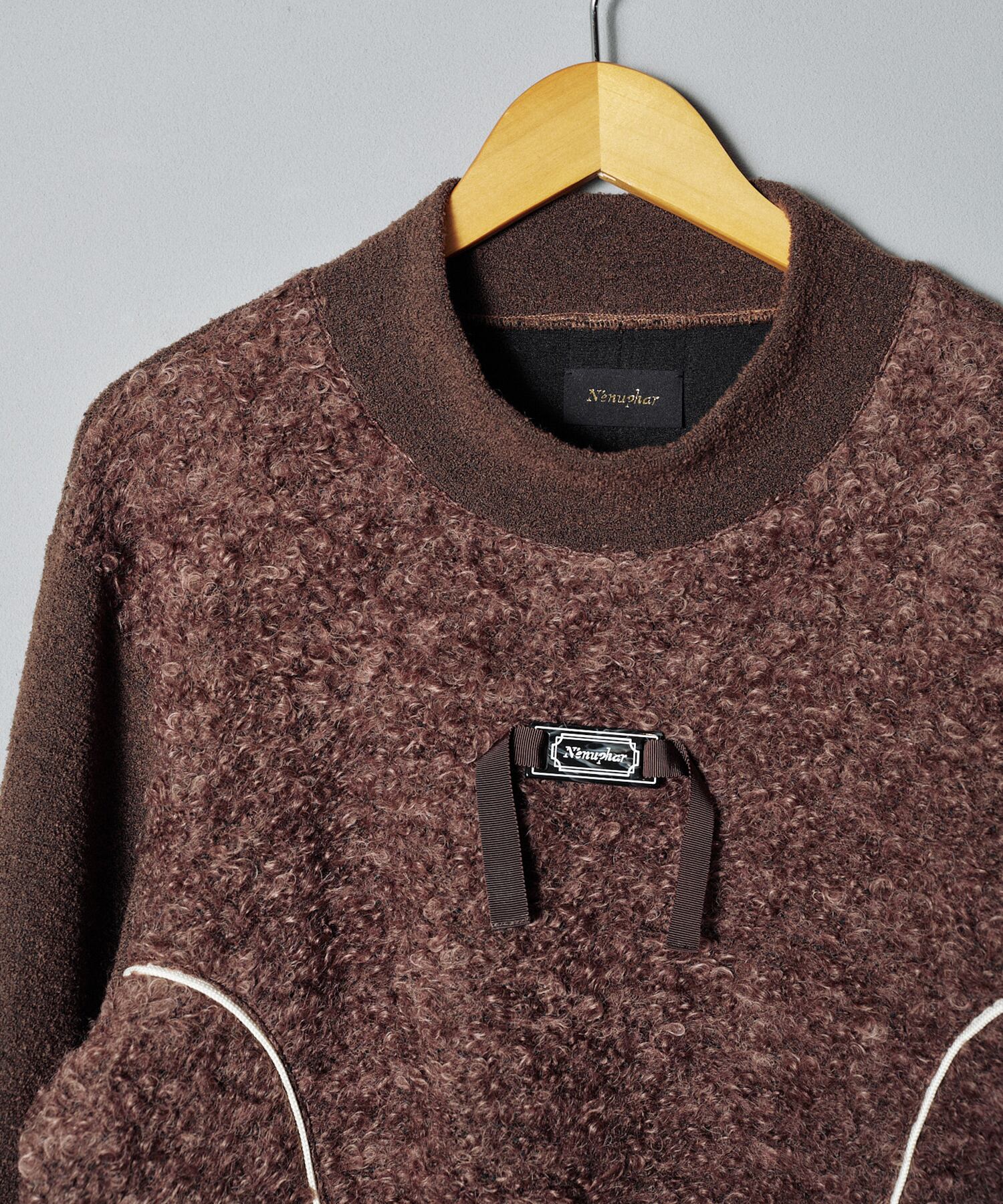 前身頃には、モヘア調の光沢とソフトな肌触りがあり、大きなループが特徴のループツイードニット素材を使用。